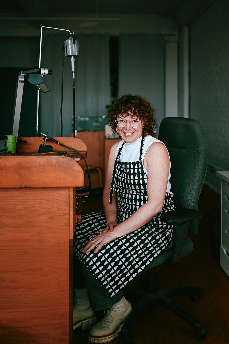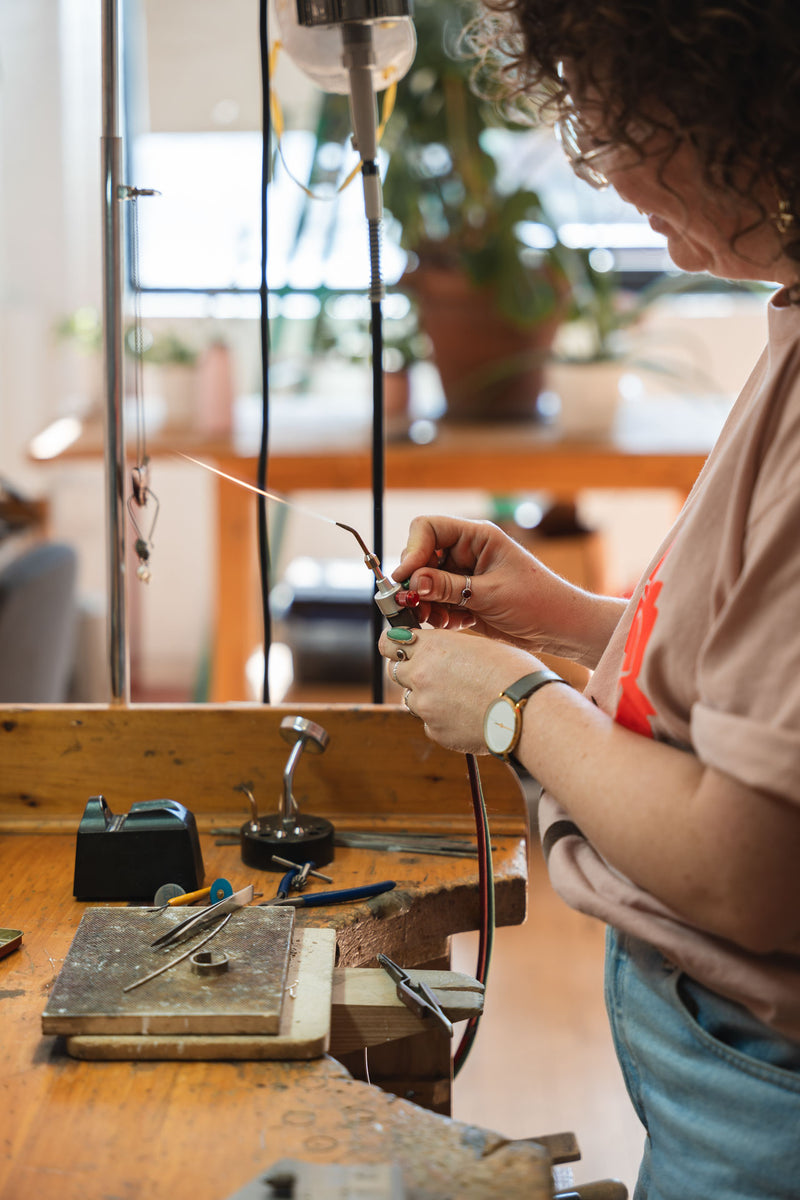 Today, her collections of handmade jewelry—available online and in select stores—continue to evolve, reflecting her journey as a designer and the stories of those who wear her work. Every piece is made by hand in her studio located in the vibrant Saint-Henri neighborhood of Montreal.
