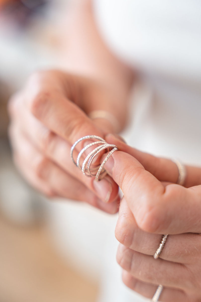 Each piece is handmade in Canada with intention—designed to speak to those who wear jewelry not just as adornment, but as a form of expression. Her work balances strength and softness, architectural lines and organic textures, always rooted in a deep appreciation for material and form.